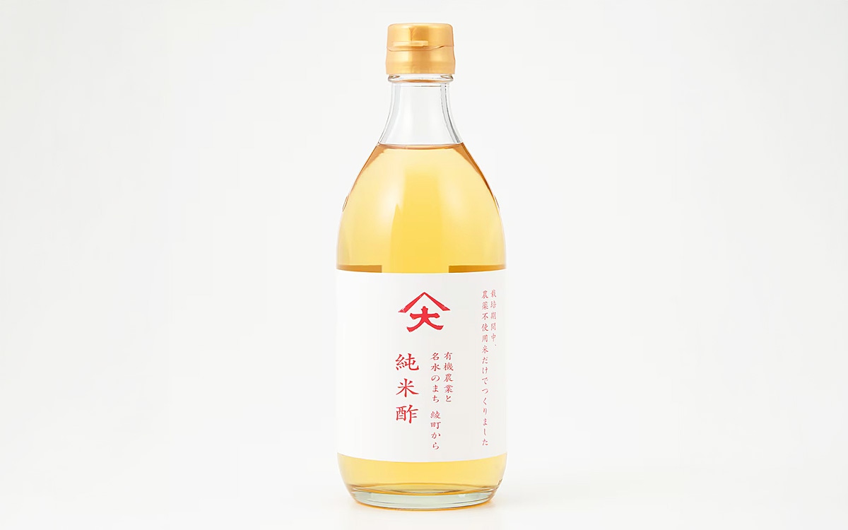 九州産(島根県産含む)の栽培期間中、無農薬栽培米のみを使用し、綾の名水で6ヶ月かけて仕込みました。お料理にフルーツビネガーつくりに、幅広くお使いいただける米酢です。