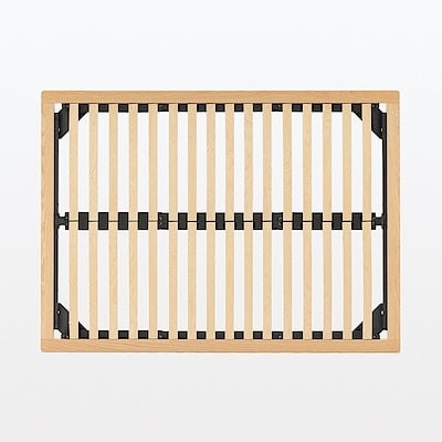 ウッドスラット仕様で寝心地を考えた、フレームが薄く、圧迫感の少ないシンプルなベッドです。搬入しやすいように組み立て仕様にしました。