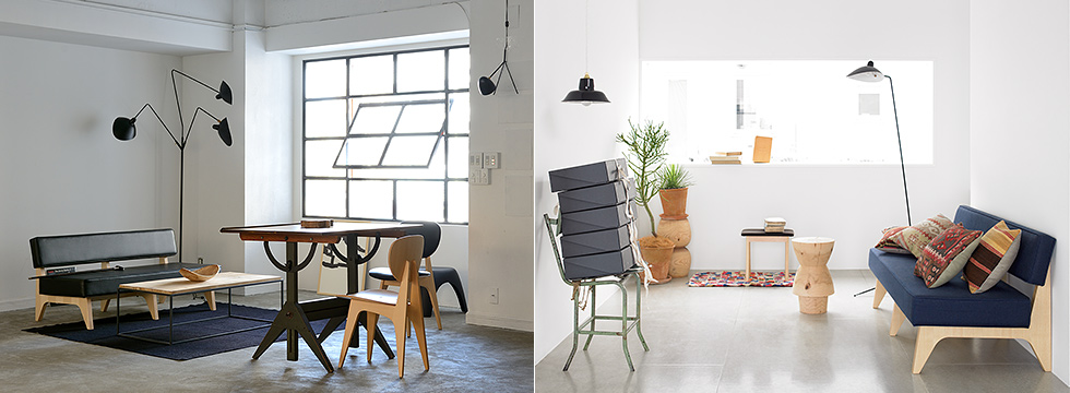 ロングセラーの「ソリッド ベンチ」は男性に人気のソファ。