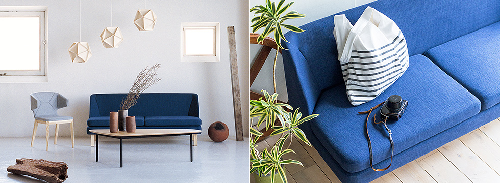 独自のセンスで幅広い活動を行なう、岡嶌要がデザインした「カイ ソファ」。