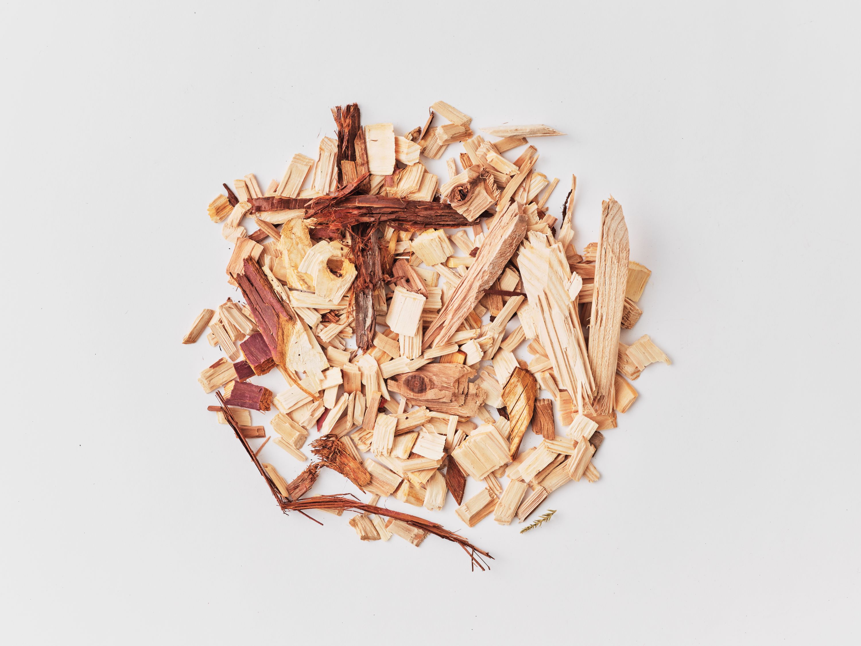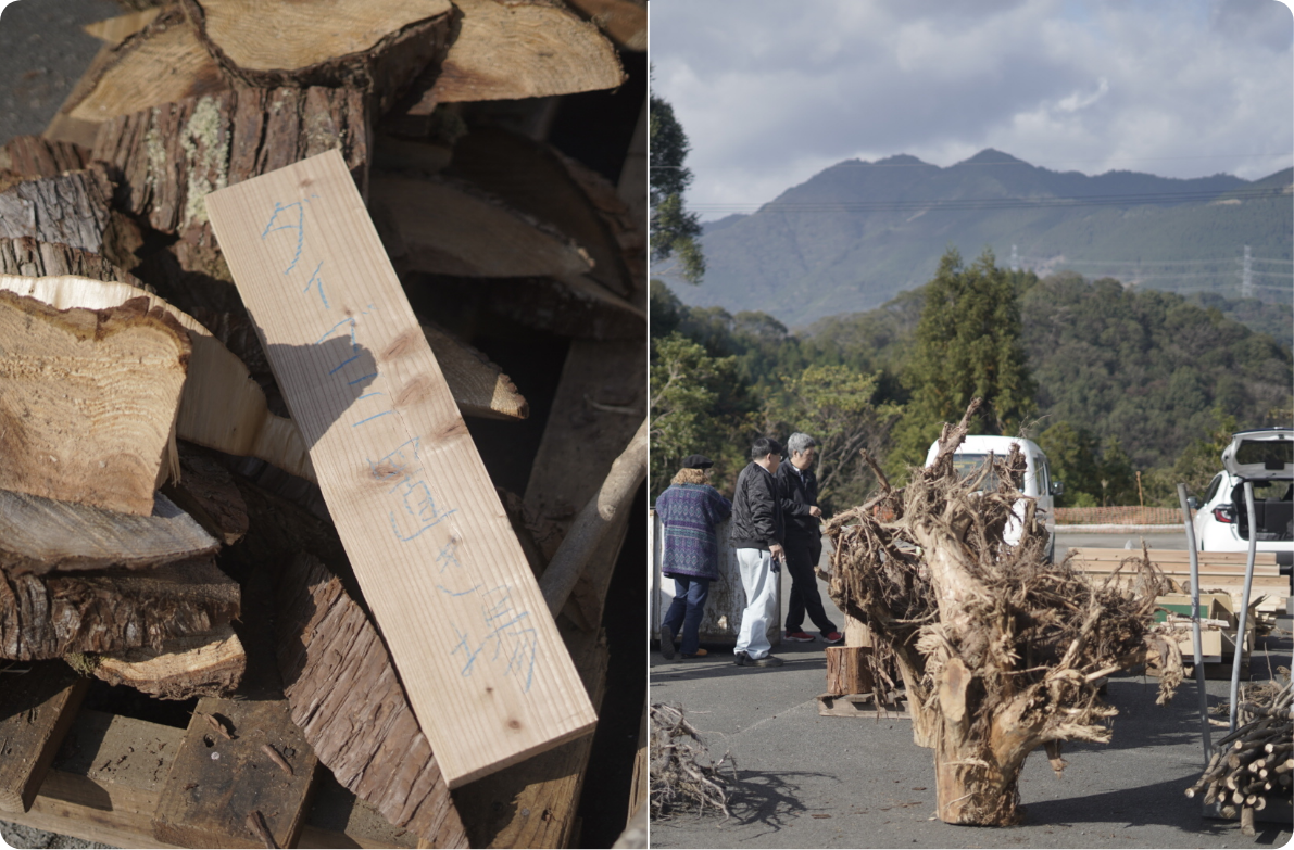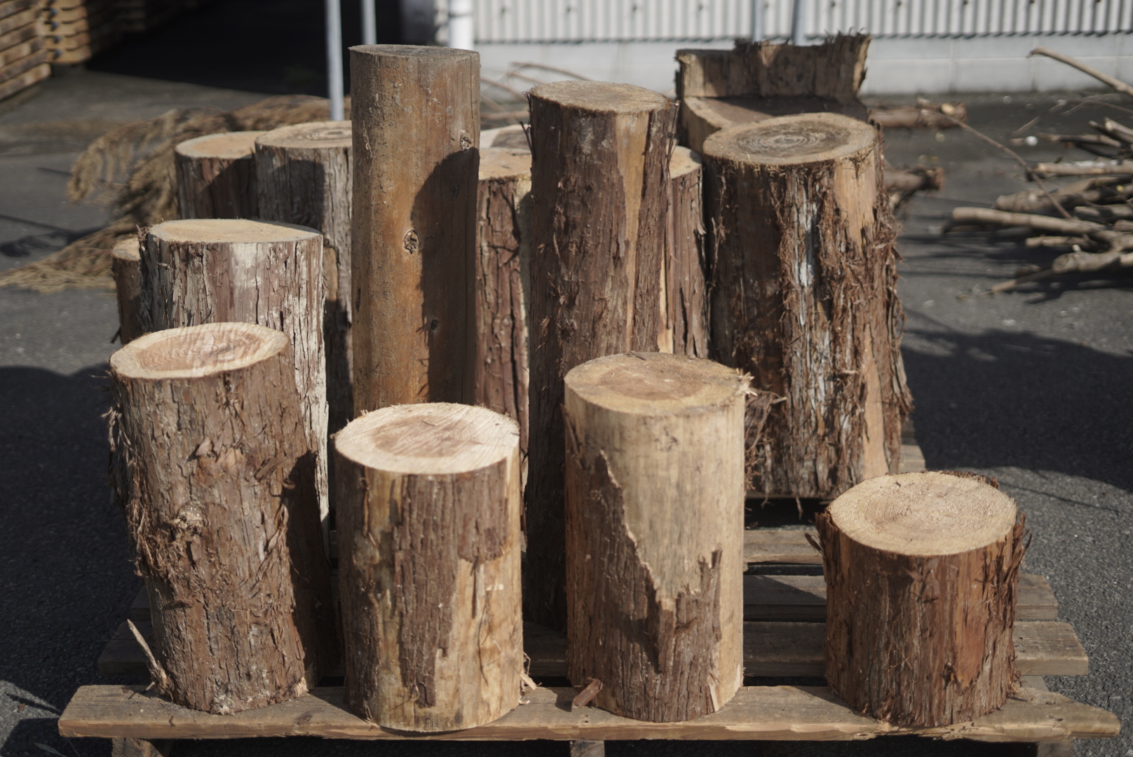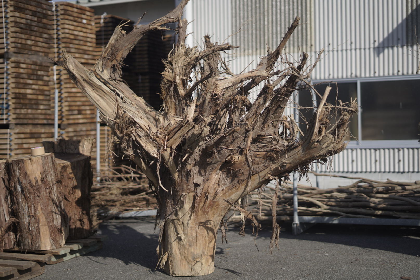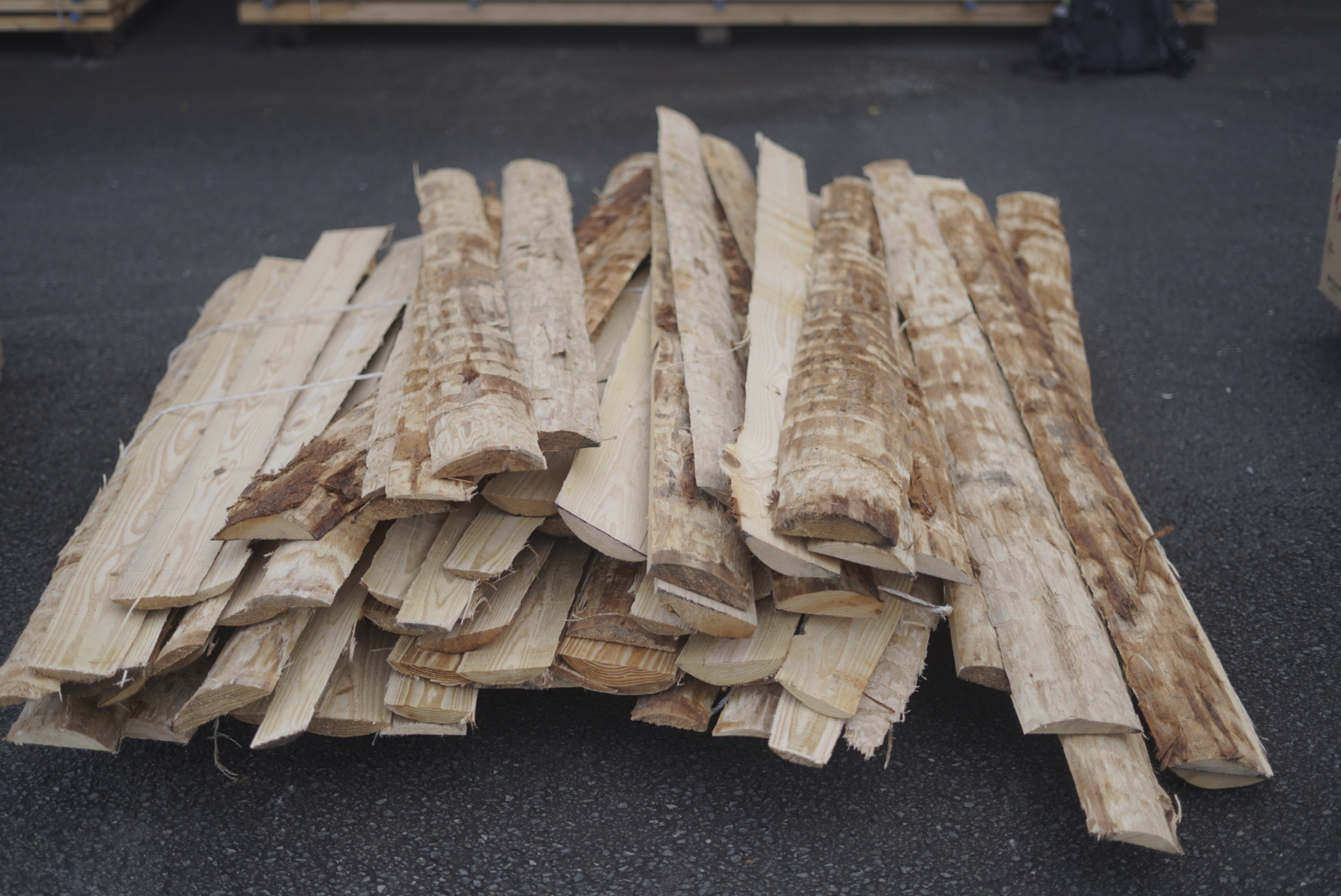 現在、山に生えている木のうち、家具や建材などに使う部分はごく一部で、使いにくい枝や葉、短い丸太、製材の過程で出る樹皮や端材のほとんどは、燃やされたり土に還るのを待つばかりです。50年近く育てられた木の大半が使われずに姿を消している現状を少しでも変えるため、