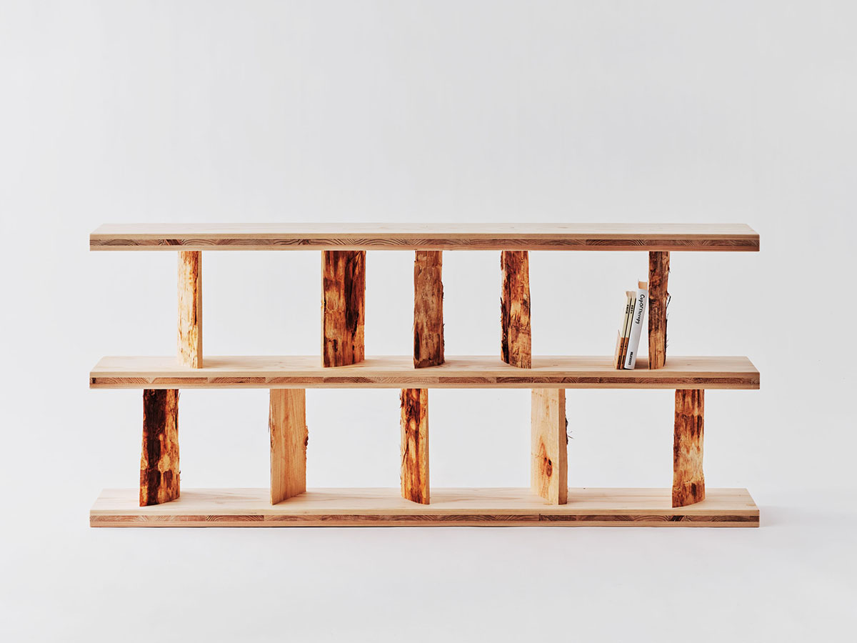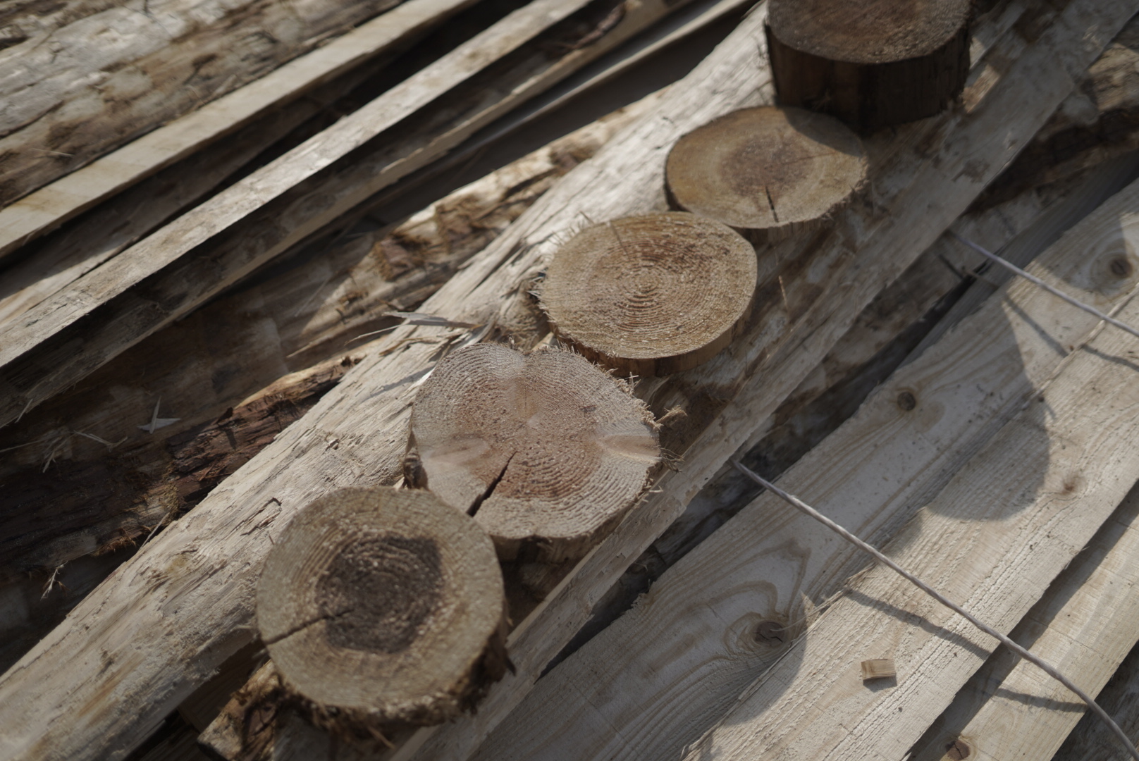 ある程度のサイズや形状を揃えた未利用材を、建材と同等に乾燥を施し、お客様に”素材”としてお届けします。節や色味、自然が刻んだ割れや表情をそのまま生かすことで、規格材では生み出せない個性豊かな空間づくりが可能となりました。
