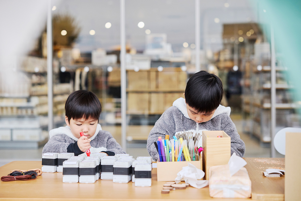 また、無印良品の店舗では、気軽に木材に触れられる、端材を活用したワークショップを開催しています。