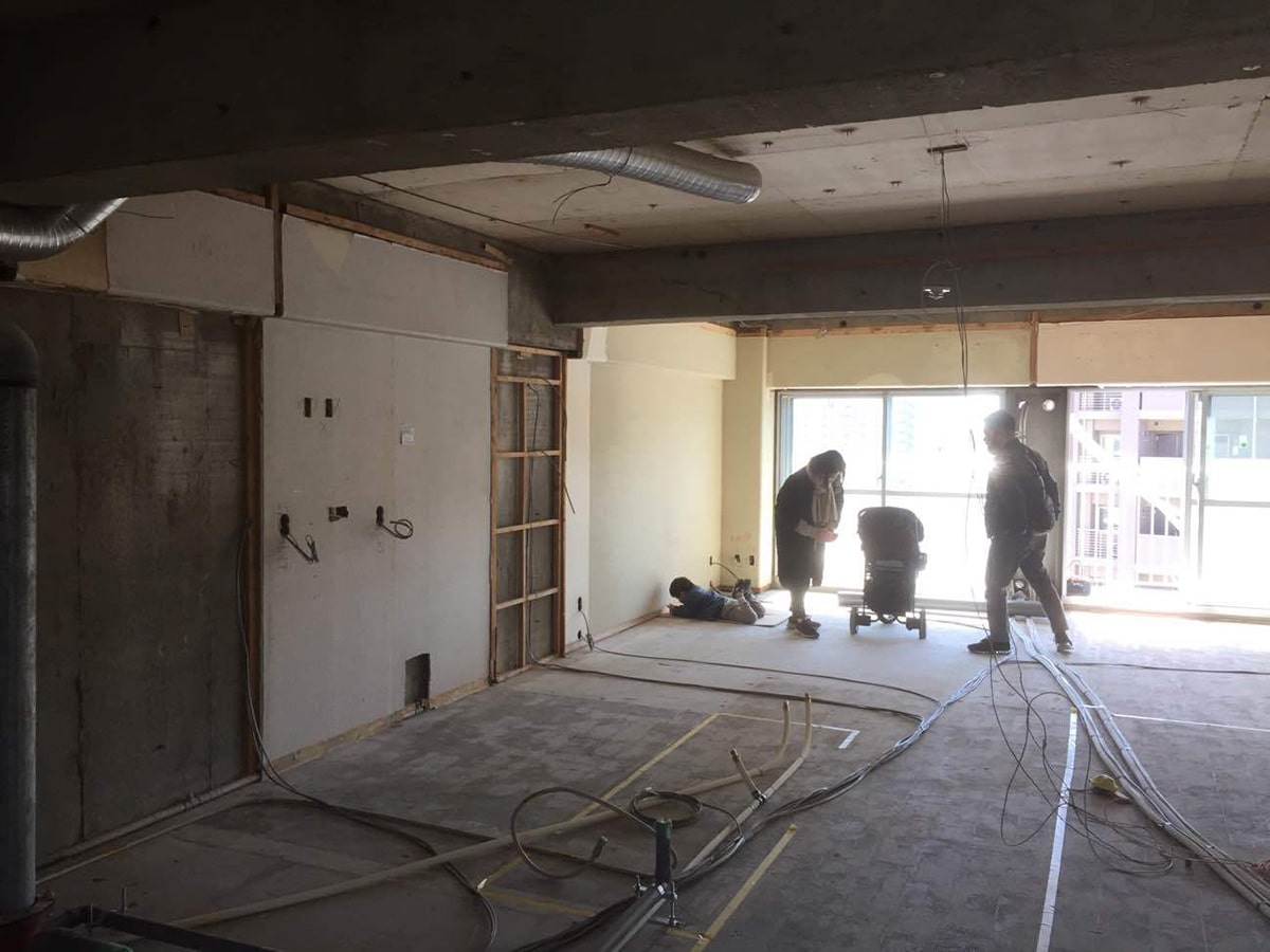 現場では設計図書上の寸法と照らし合わせ、誤差がある場合は調整する場所をご提案します。この作業は「墨だし」といい、スラブに壁のラインを引くことで確認していきます。