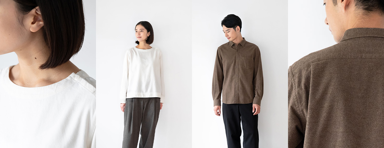 MUJI wear is clothing that's natural; one that allows the person to be their natural self every day. It's like cuddling up gently, cozily — such is "MUJI wear" clothing. Through happiness, sorrows, and the simpler — nothing specials, let's appreciate the clothes that stay with us through this "everyday life." Clothes that don't get in the way of the natural selves of those who wear them — that's the one quality that we cherish the most at MUJI.