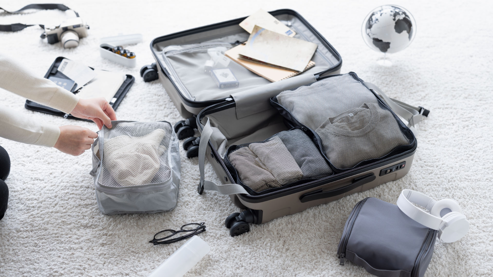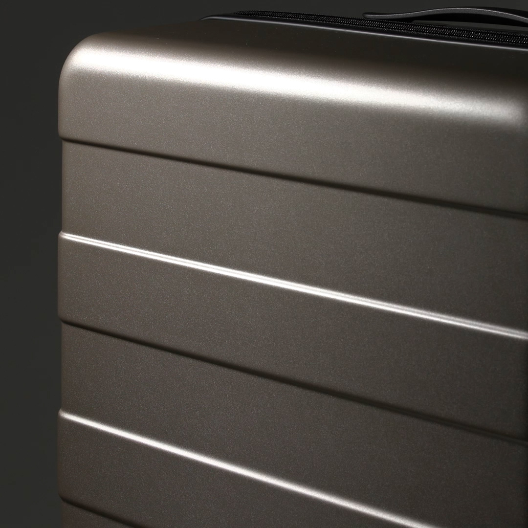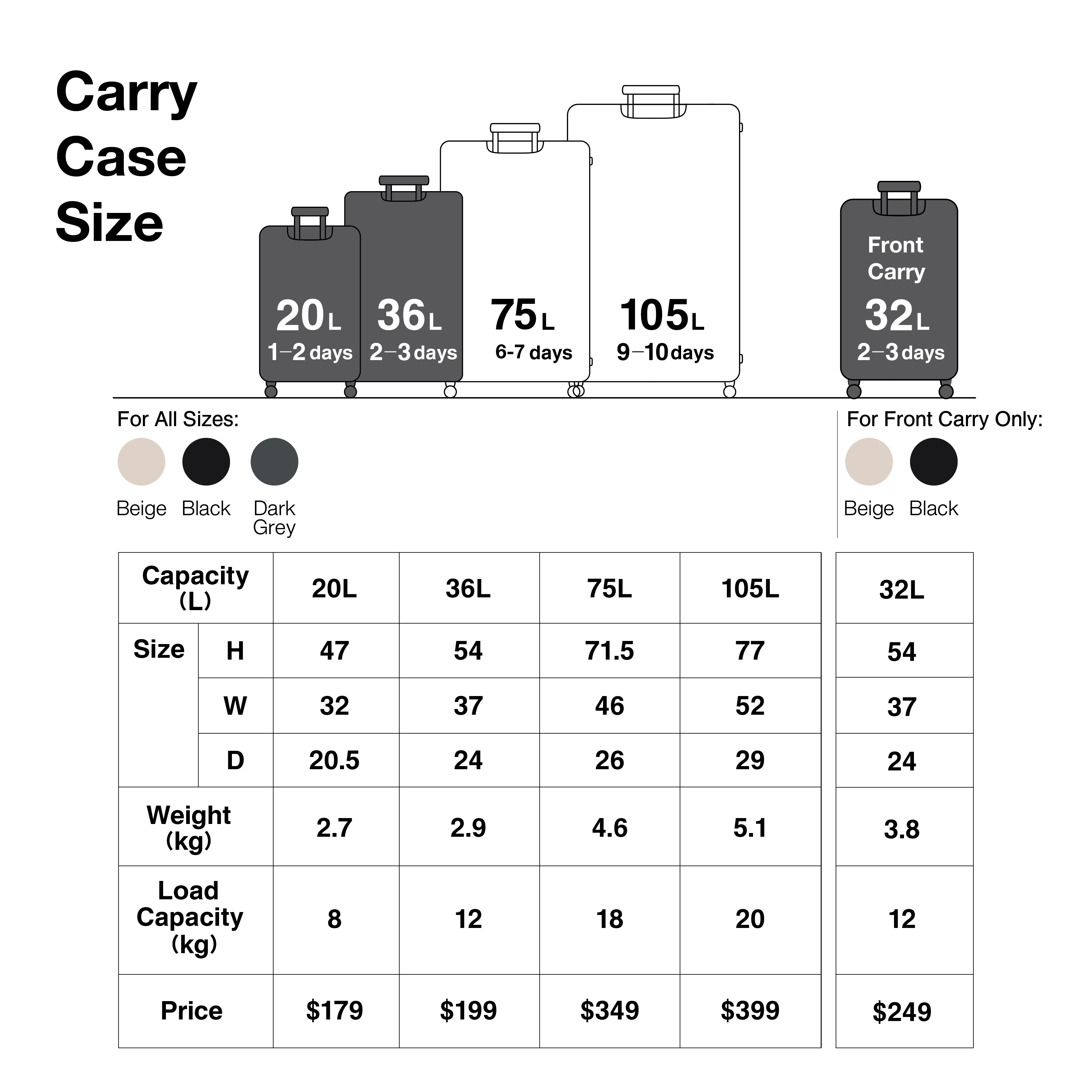 This compact hard carry case with a 32L capacity is equipped with a front open pocket, making it convenient for storing frequently accessed items such as passport cases, documents, and laptop. The interior includes an inner pocket and a stopper strap to prevent the lid from opening completely. The strap is detachable, allowing the case to open fully when needed.